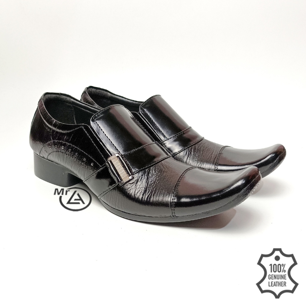 Mr. LA Sepatu Pantofel Formal Pria Kulit Slip On Warna Hitam Maroon Tan Ukuran 38-47