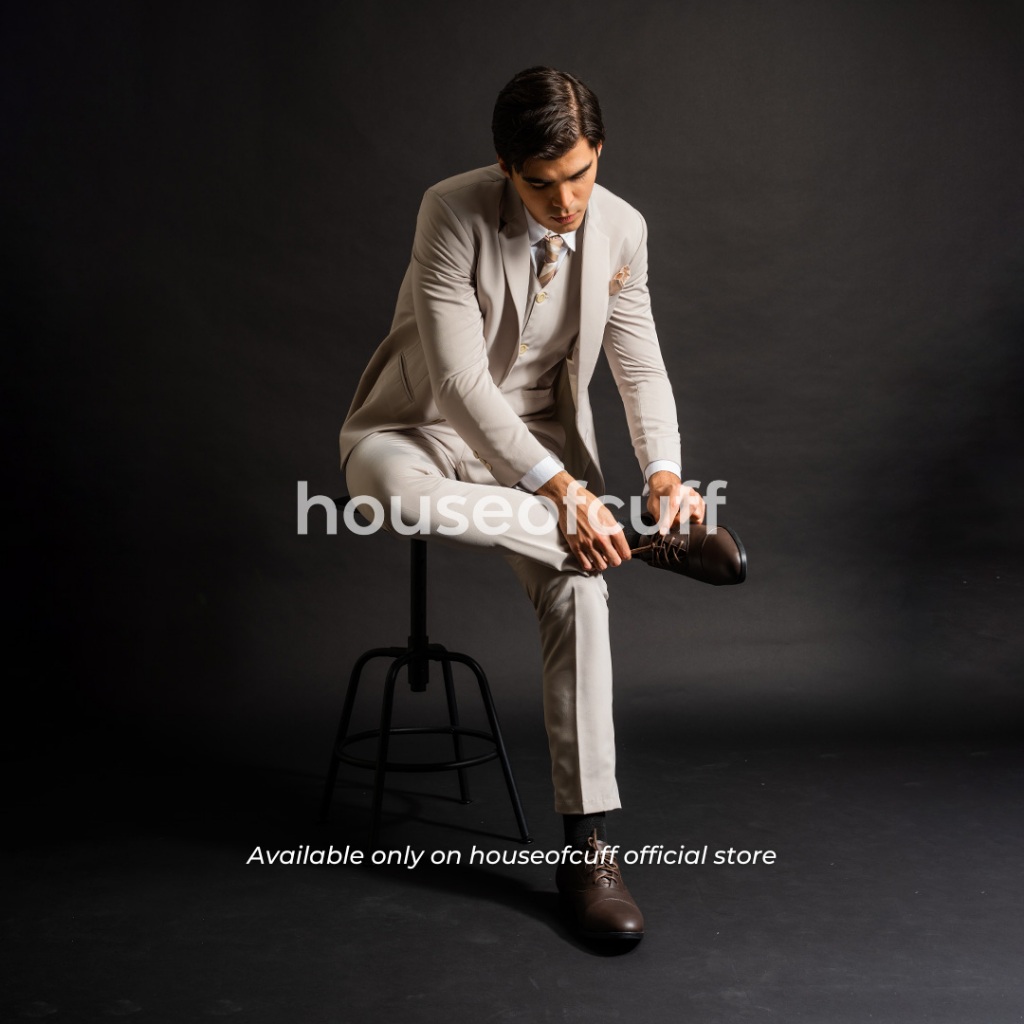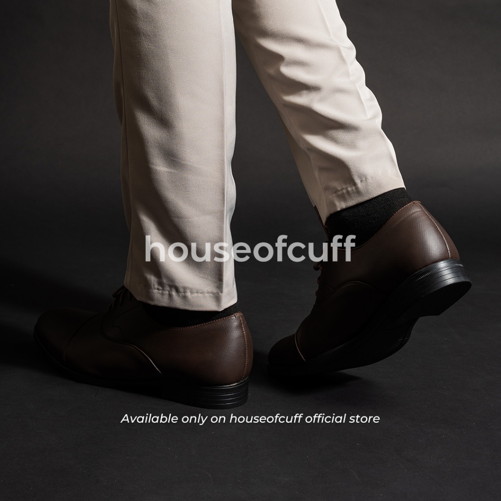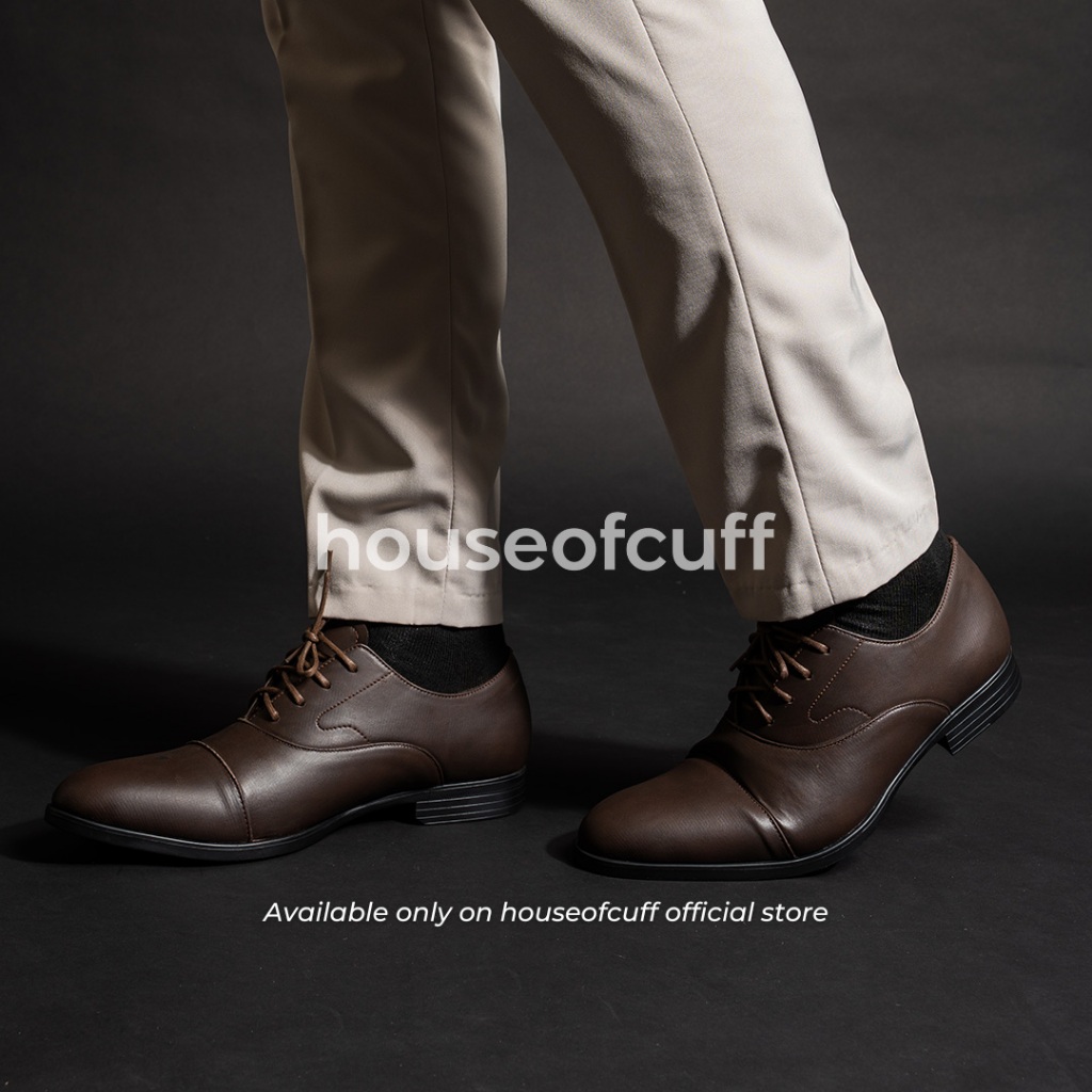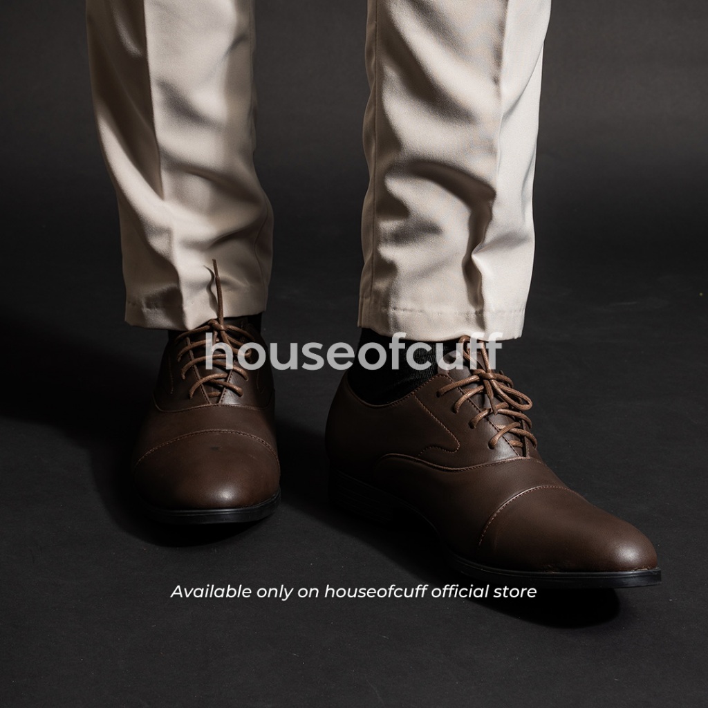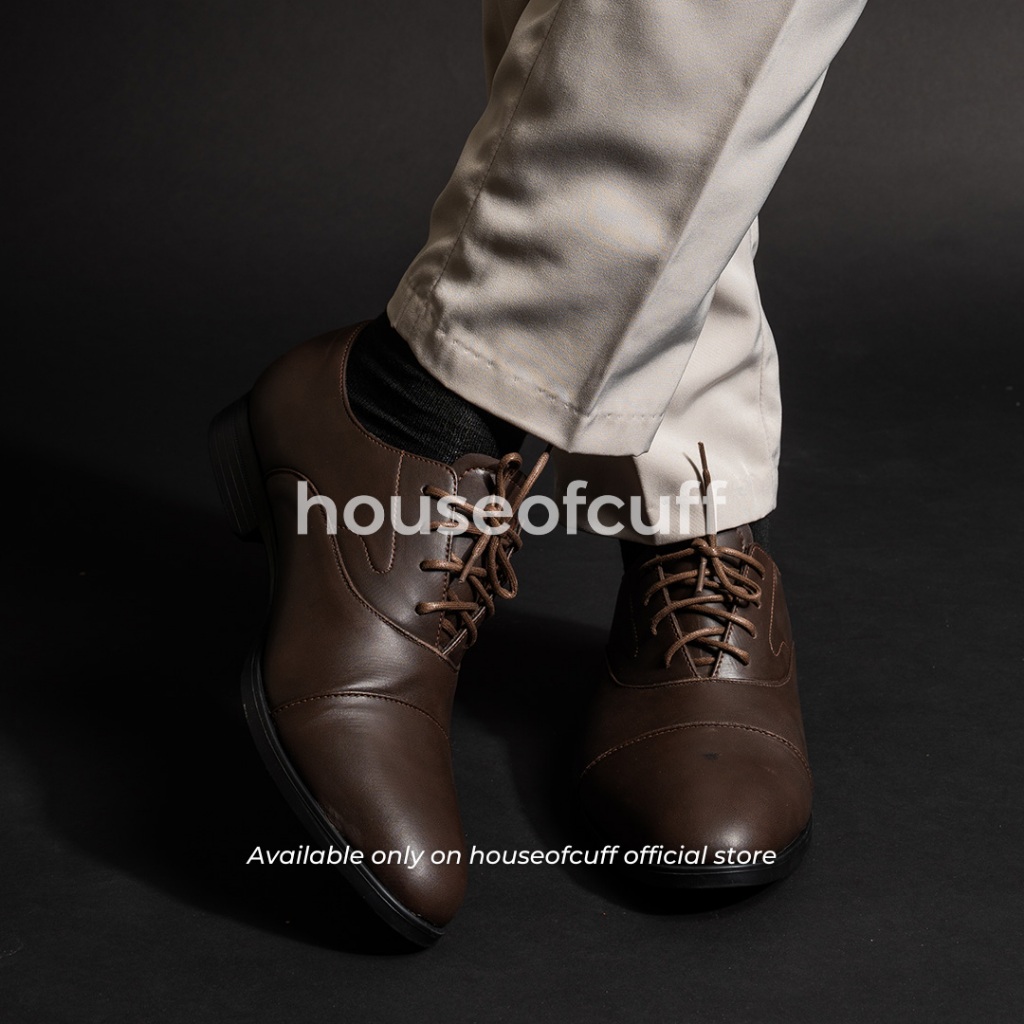 Sepatu kulit pria formal pantofel oxford quarter cap toe coklat tua houseofcuff