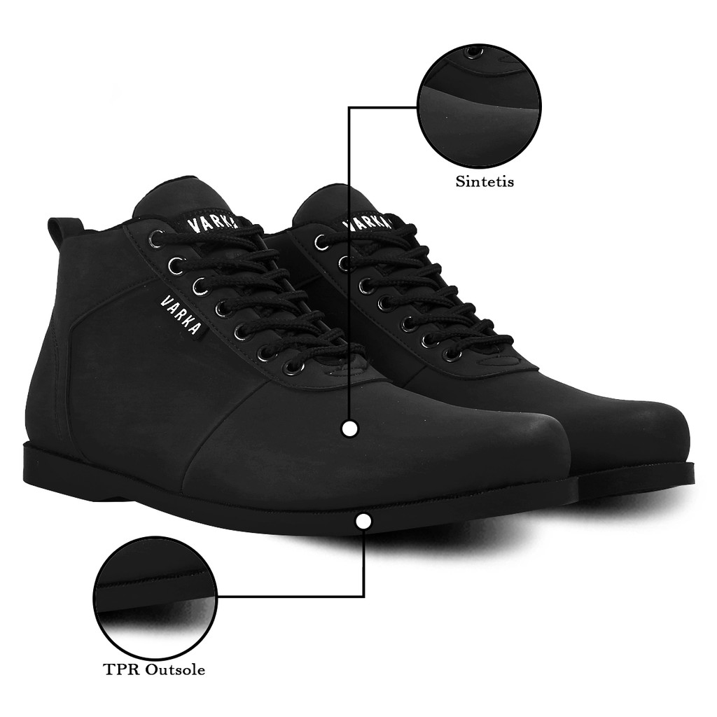 Sepatu Casual Pria Terbaru V 42812 Brand Varka Sepatu Boots Kulit Sintetis Kuliah Kerja Warna Hitam