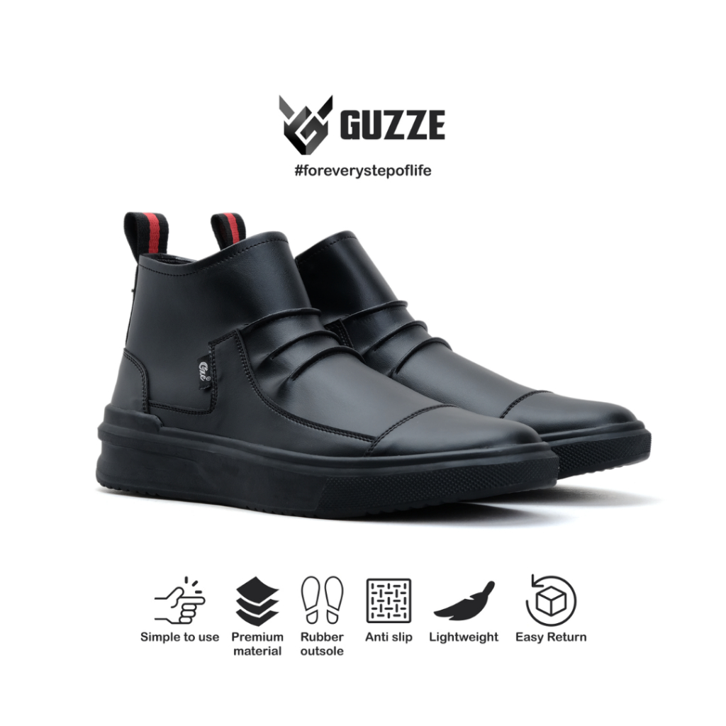 Sepatu Boots Pria Guzze Hero Black Casual Sintetis