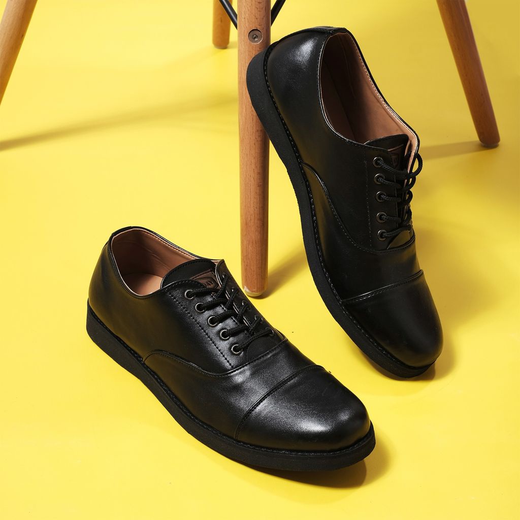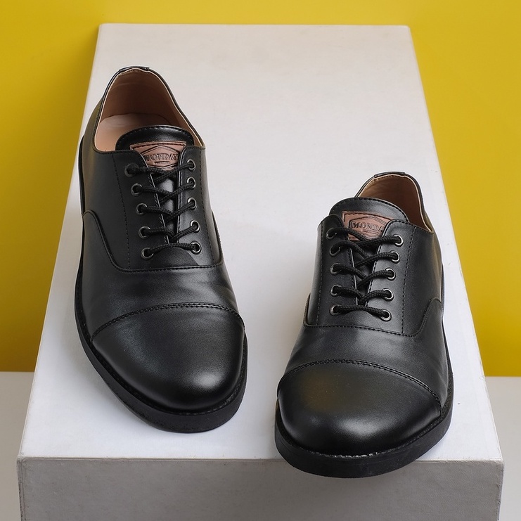 OXFORD FULL BLACK - Sepatu Pantofel Pria Formal Kulit Kerja Resmi Kondangan Pantopel Original Monday