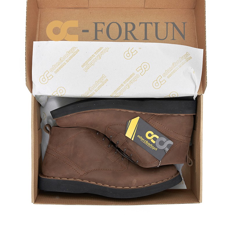 Sepatu Casual Boot Pria Kulit Asli Odon Cibaduyut OC Fortun Coklat Kekinian Pantofel New Formal