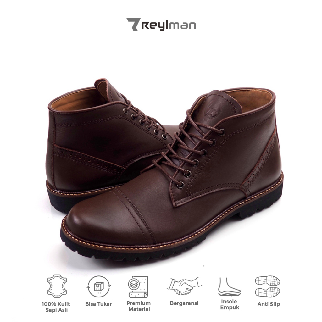 REYL MAN Acoustic 03 Brown Series Sepatu Boots Pria Kulit Asli