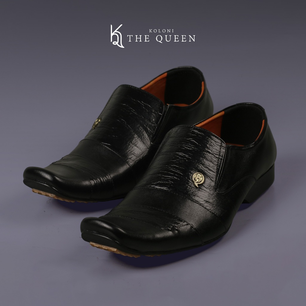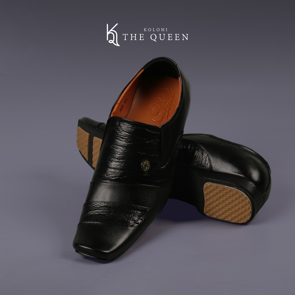 KQ Indonesia Sepatu Pantopel Pria K-504 Original Kulit Asli-Black