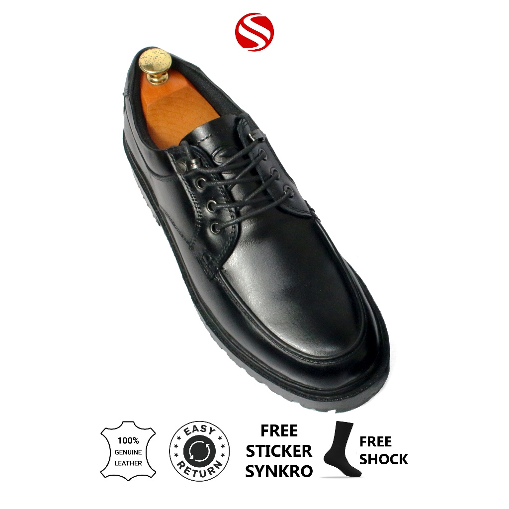 39-43 Synkro Satya - Sepatu Pria Kasual Formal Oxford Hak 5cm Kulit Asli Hitam