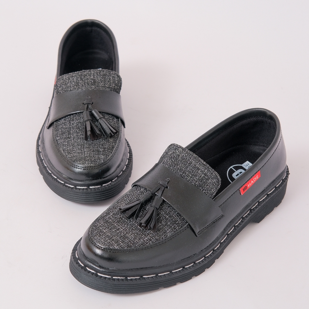 Sepatu slip on Penny Loafer hitam kombinasi Pria / Wanita / unisex / HADE FOOTWEAR UK 36-45