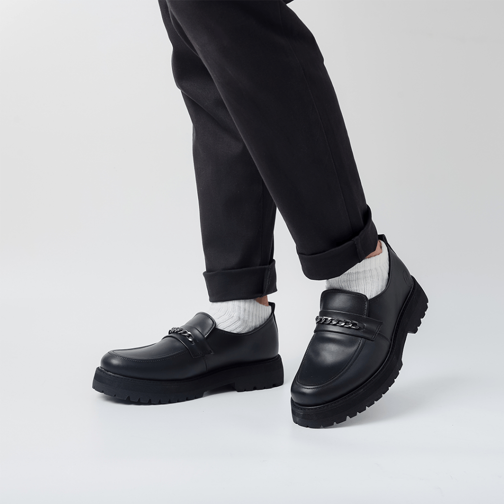 Kenfa - Benze Black Sepatu Formal Slip On Rantai Pria Wanita Pantofel Kuliah Kerja Kantor Tinggi