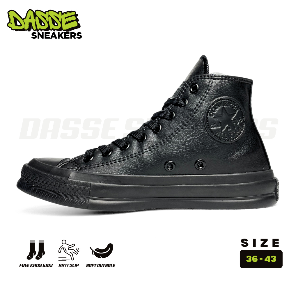 Dasse Sneakers - Converse High Leather Full Black - Sepatu Sneakers Casual Klasik Pria & Wanita
