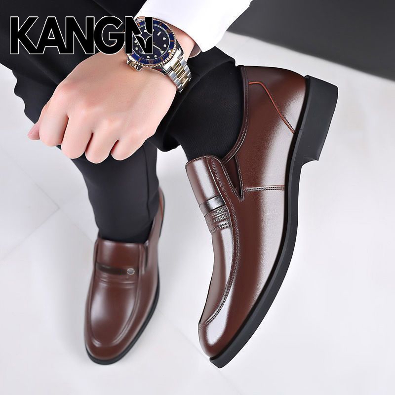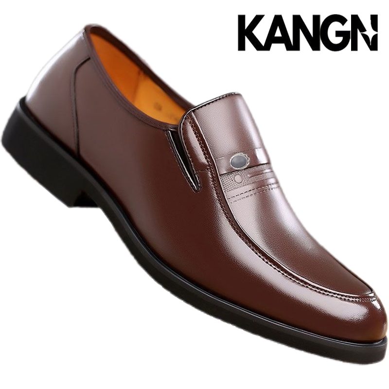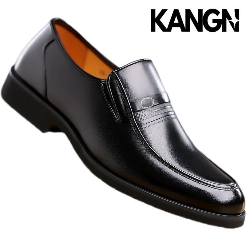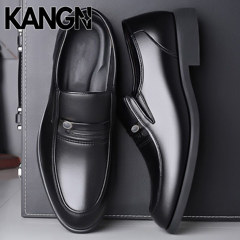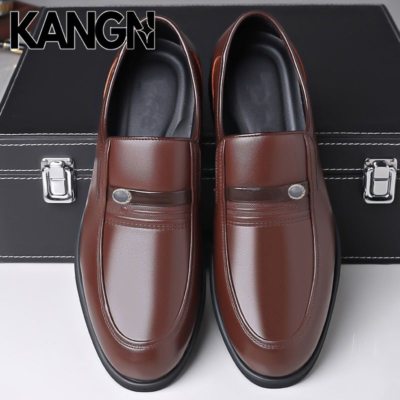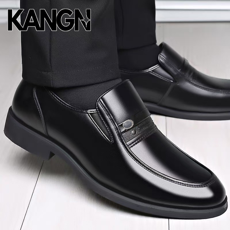 KANGN Sepatu Pantofel Oxford Pria Kulit Hitam Polos Model Slop Kantor Kerja