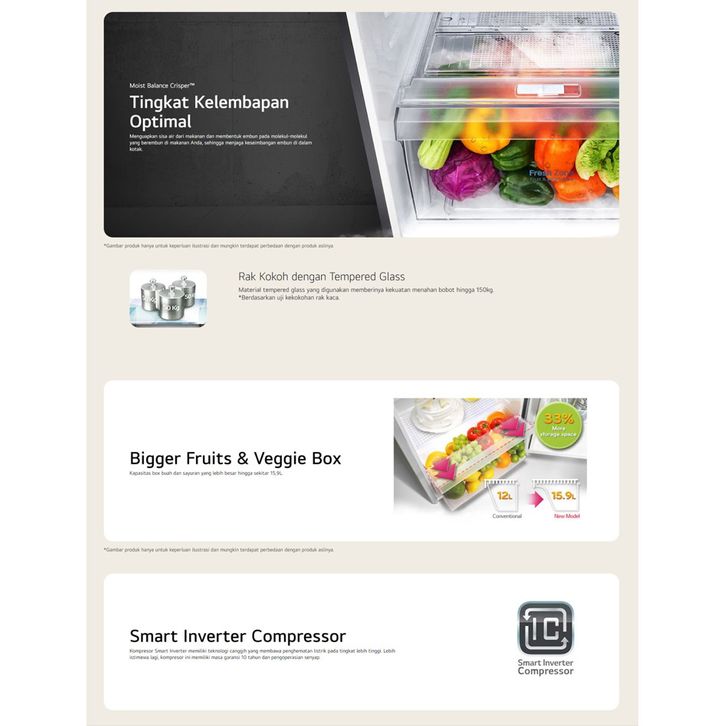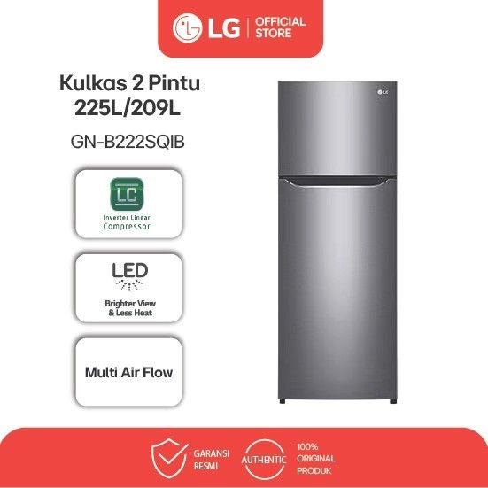 LG Kulkas 2 Pintu GN-B222SQIB 225L Gross/ 209L Nett - Top Freezer Fridge in Dark Graphite Steel
