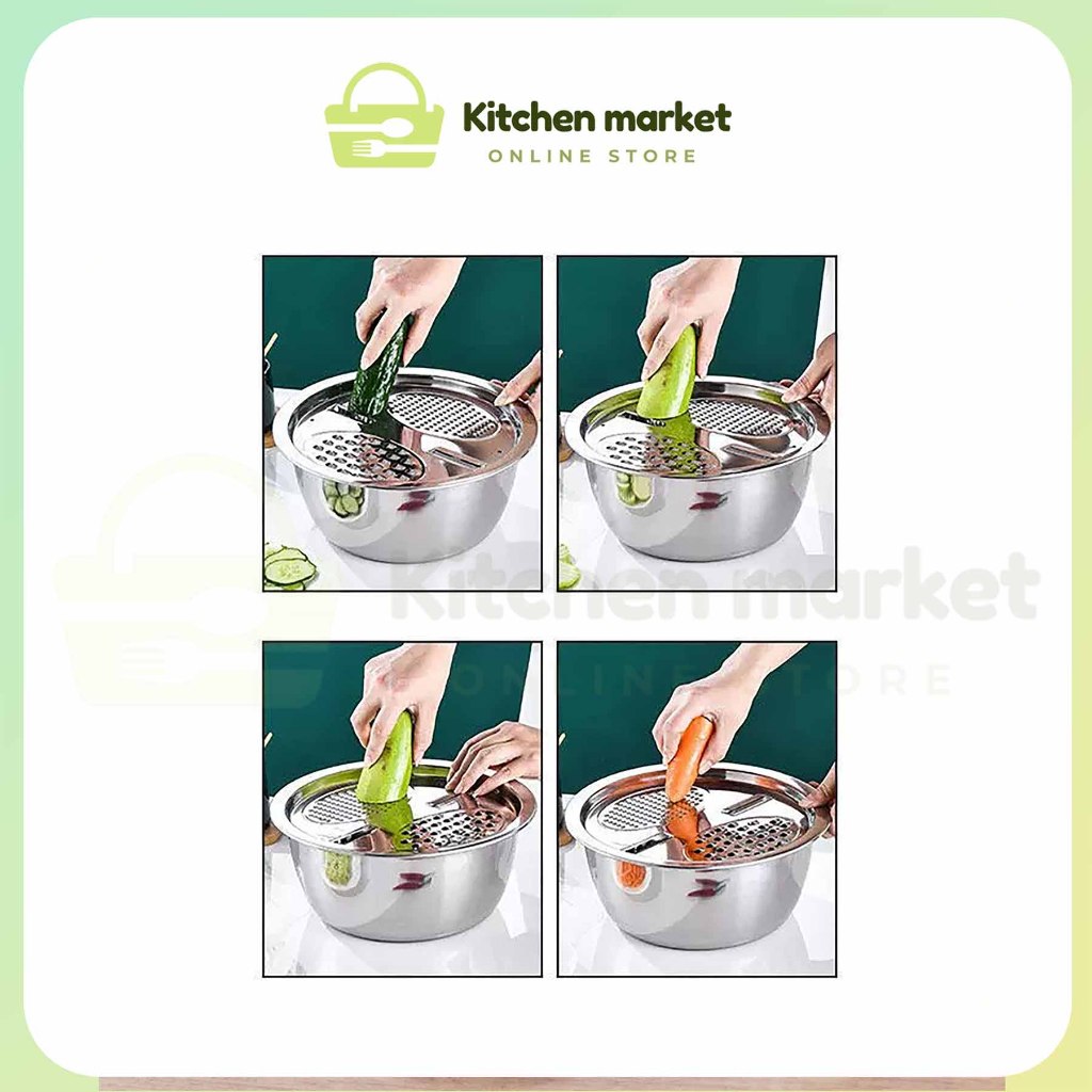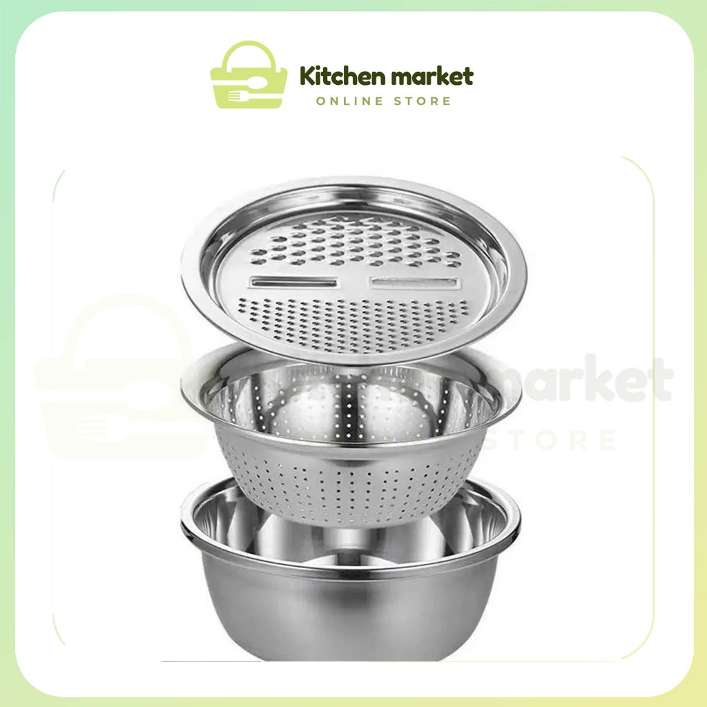 (KM) Baskom Parutan Set 3 In 1 Stainless - Parutan Serbaguna Pengiris Sayuran Buah Baskom