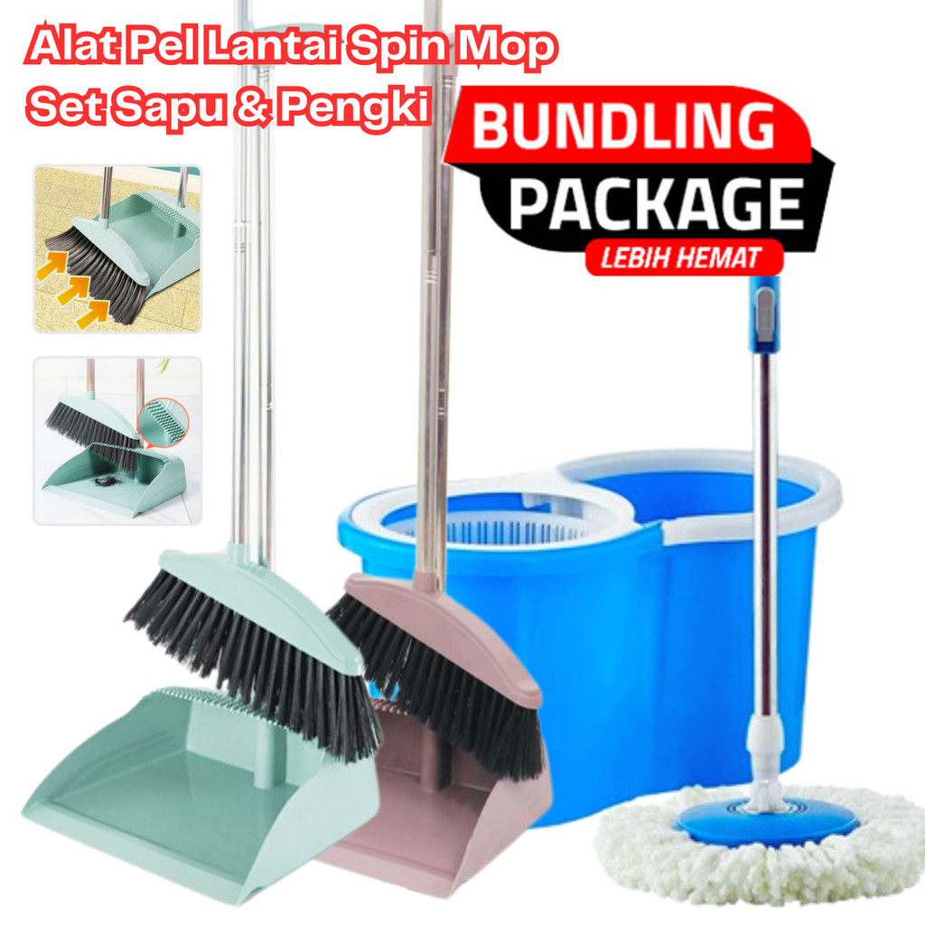 Paket Bundle Hemat Pel Lantai Ultra Mop Aclima Spin Mop + Sapu Pengki Set - Package Alat Kebersihan
