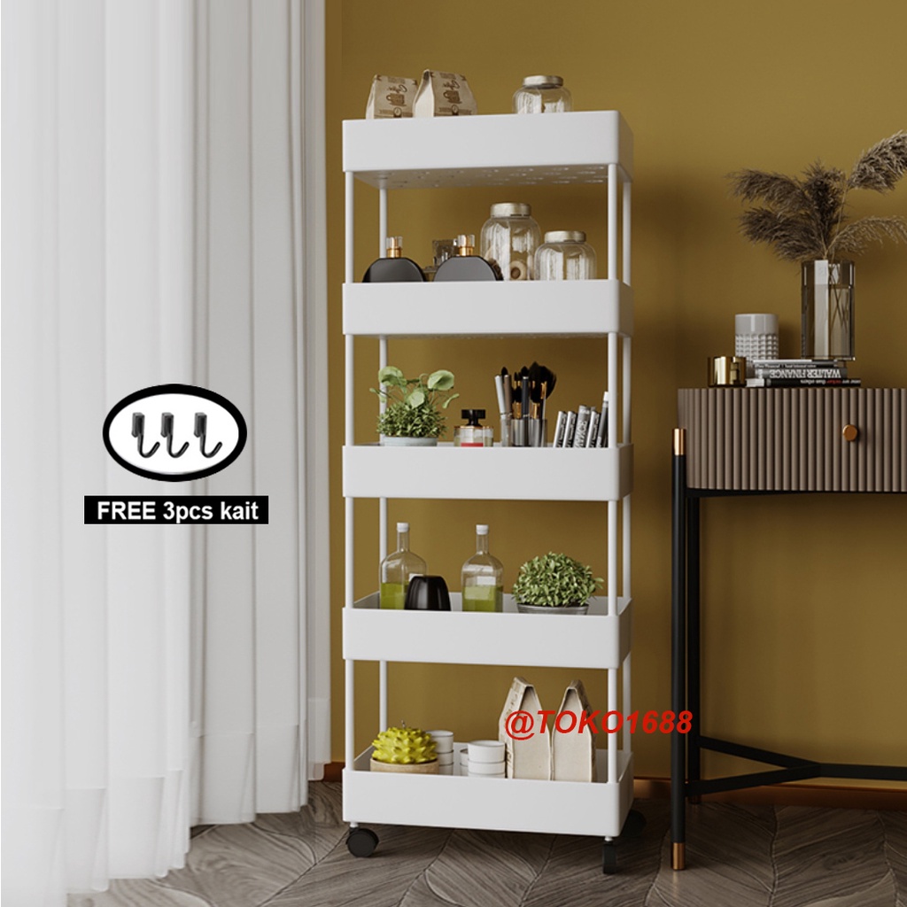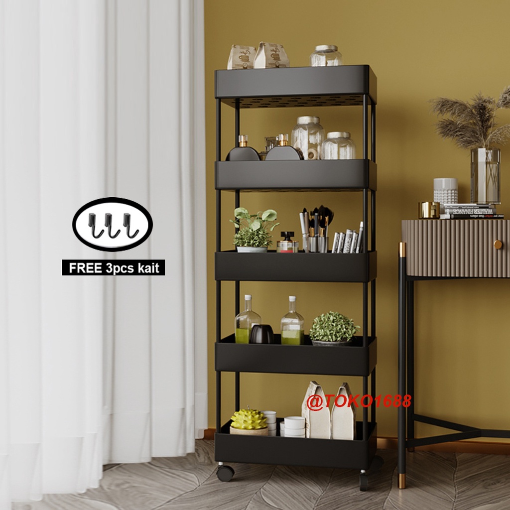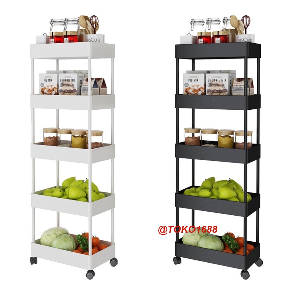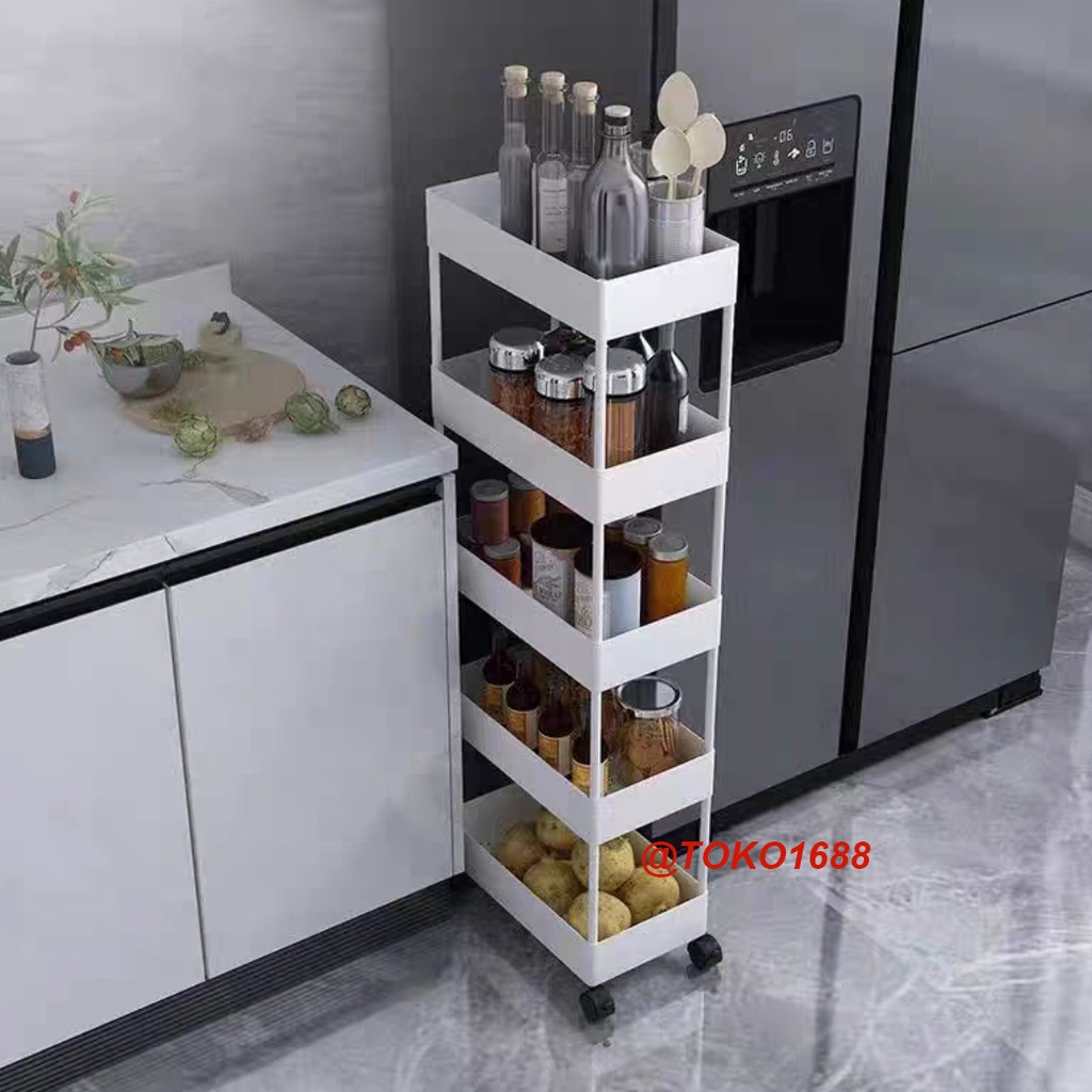 Rak dapur serbaguna rak troli rak kamar mandi rak susun square 5 tingkat dengan roda