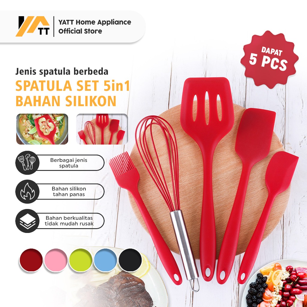YATT Spatula Silikon Set Silicone Utensil Alat Masak 5 in 1 Sutil Kuas Silikon Tahan Panas BPA-Free