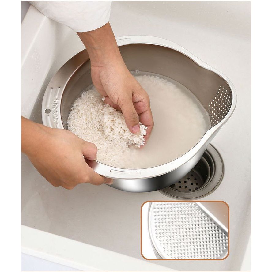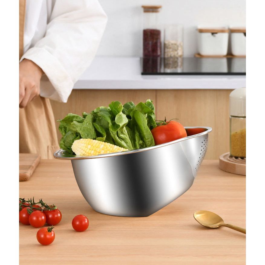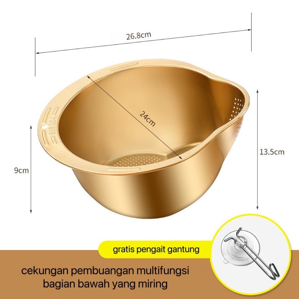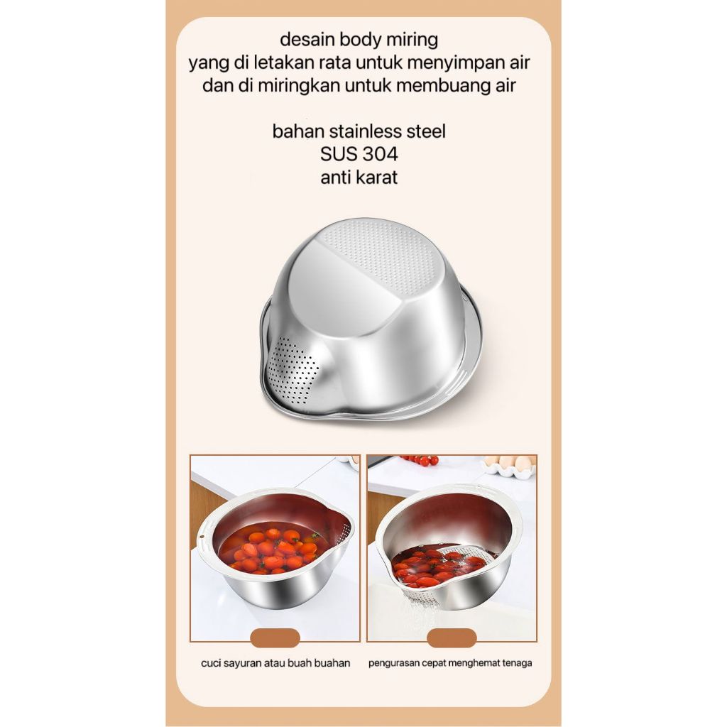 BAKINDO Baskom Stainless Steel SUS 304 Saringan Cuci Beras Sayuran Dan Buah Buahan Wadah Cuci Beras Alat Cuci Beras Biji