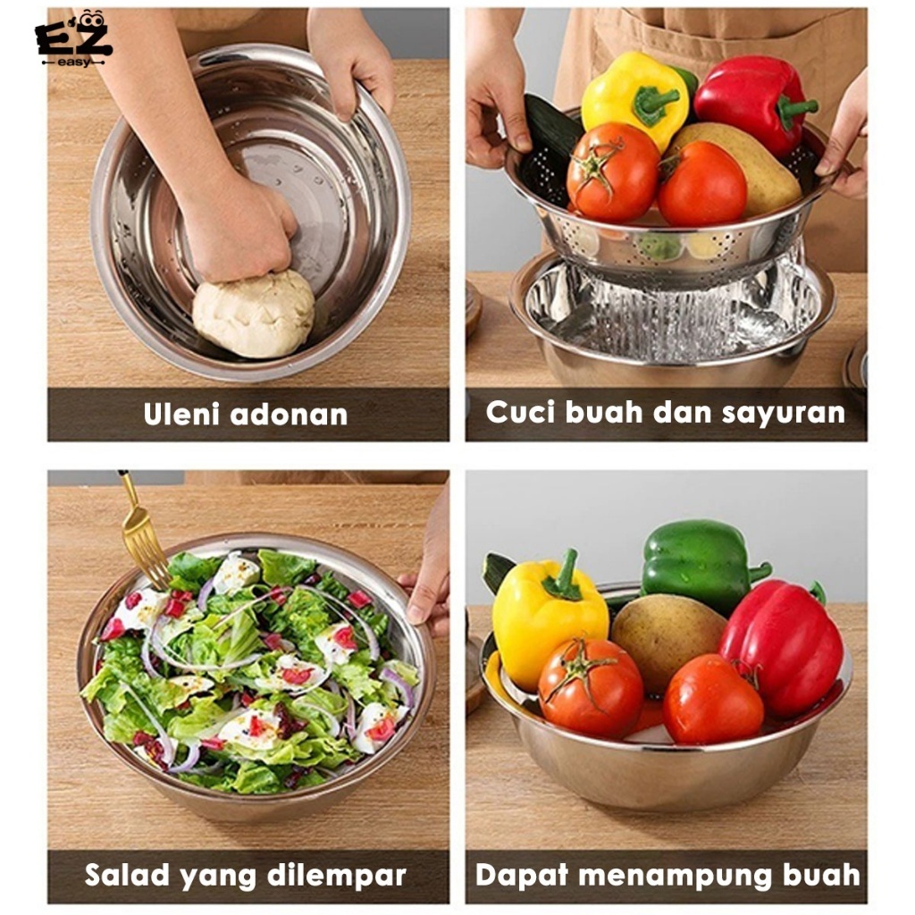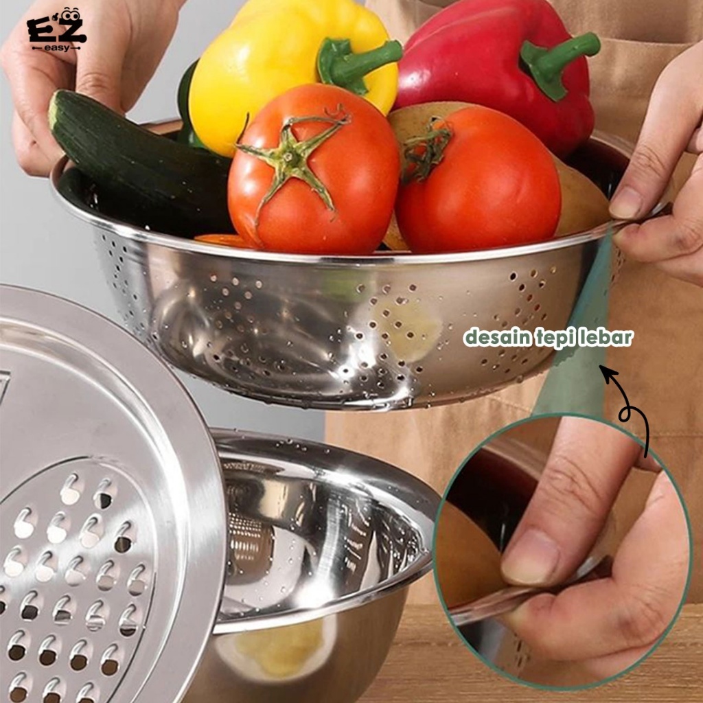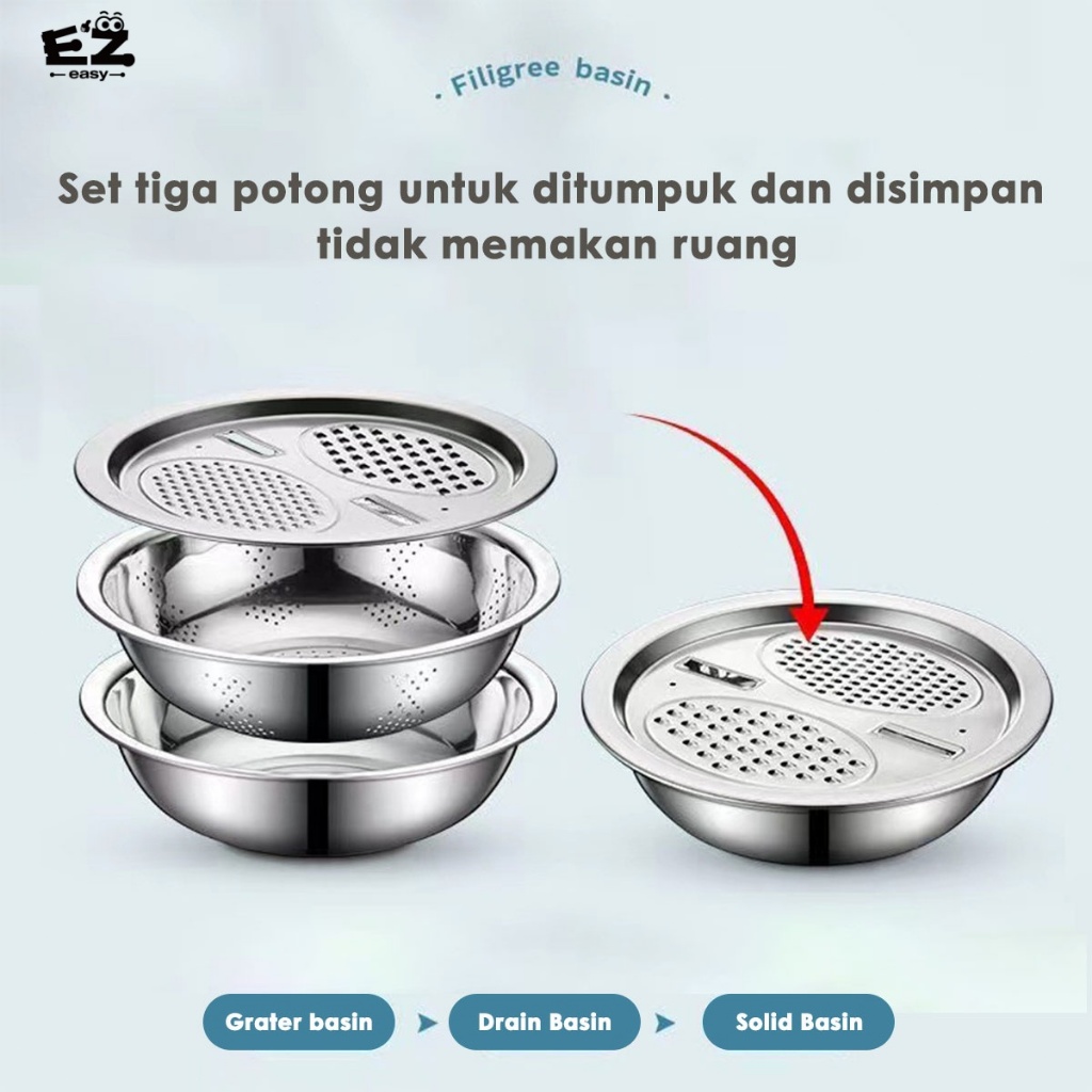 EZ 304 3in1 Baskom Multifungsi/Baskom Pembuangan Parutan Stainless Steel Serbaguna Baskom Parutan Dapur Stainless Stee