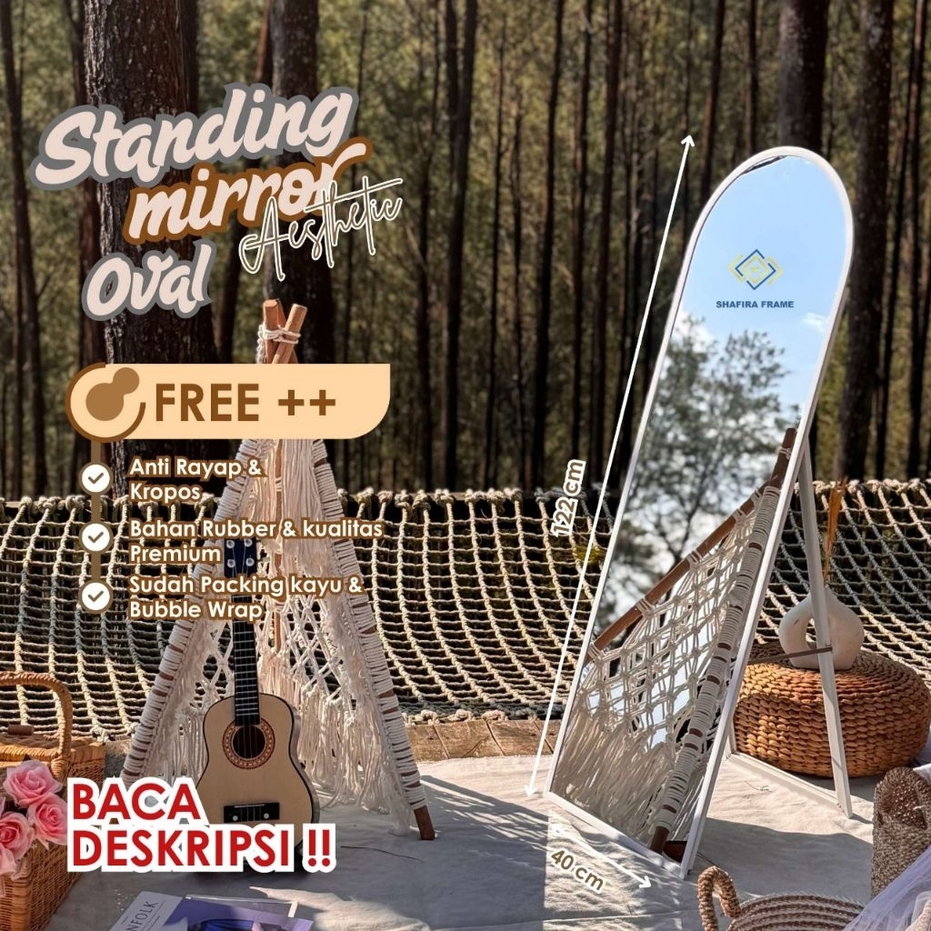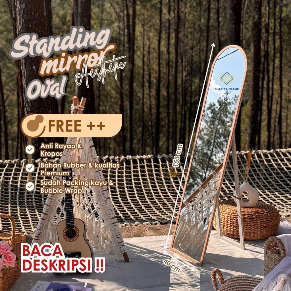 standing mirror aesthetic full body rubber oval 40x153 Premium (WAJIB BACA DESKRIPSI)
