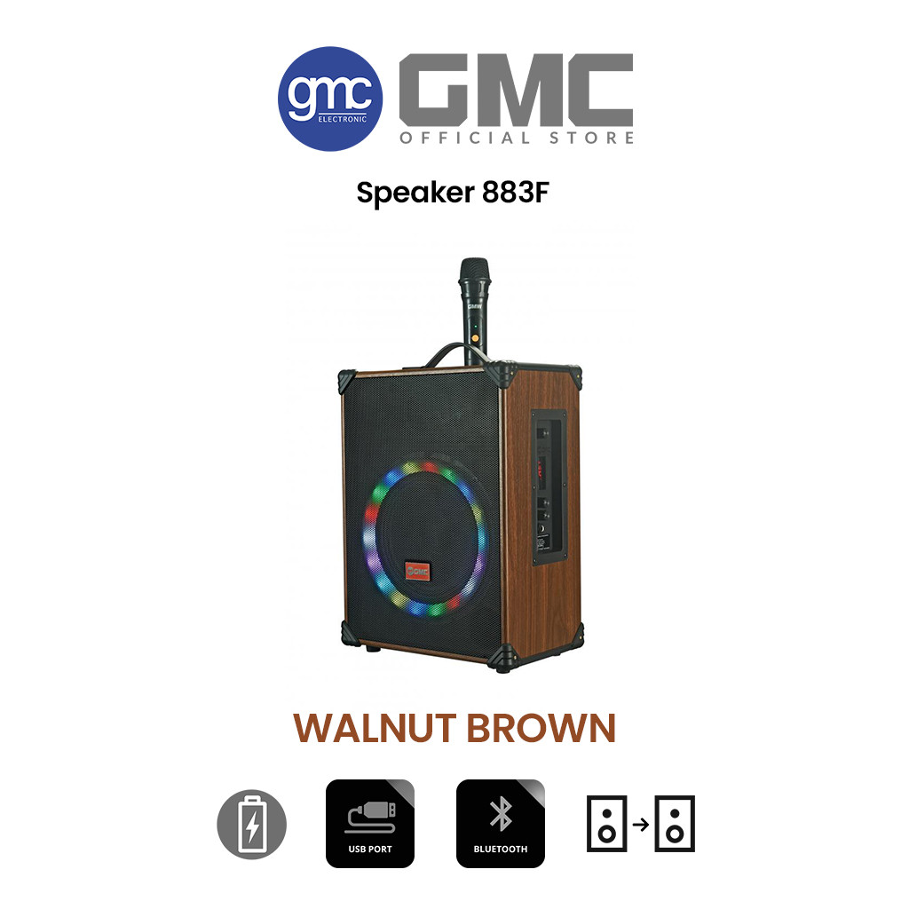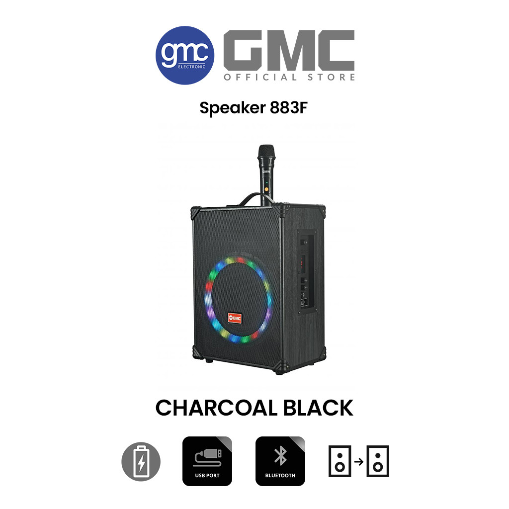GMC Speaker 899P – Speaker Karaoke Bluetooth 6.5"– 120W, 2 Mic Wireless UHF, USB, SD, AV In, RadioFM