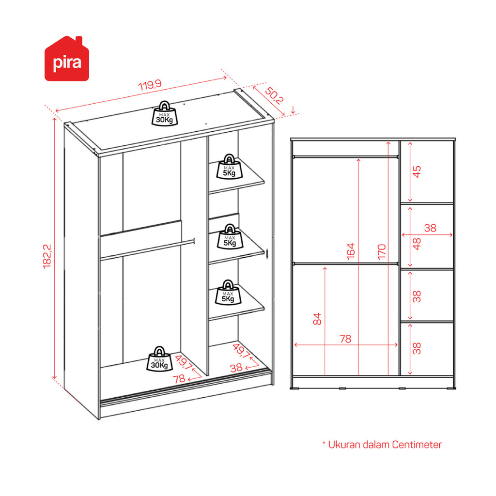 Pira Metropolis OX - Aruna WDSL120 A Lemari Pakaian Pintu Geser / Sliding