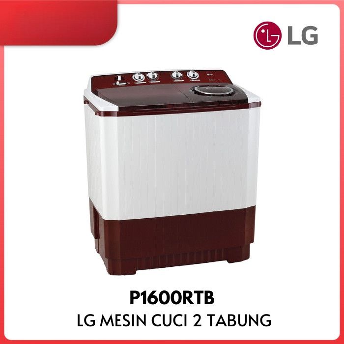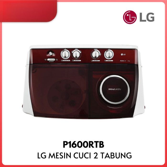 LG Mesin Cuci 2 Tabung 16kg P1600RTB - Roller Jet Pulsator, 3 Punch, Wind Jet Dry, 3 Program Pencucian