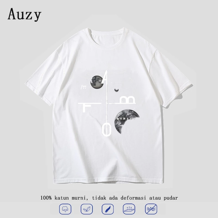 Mode bulan kaos pria wanita T-shirt baju oversize t shirt distro