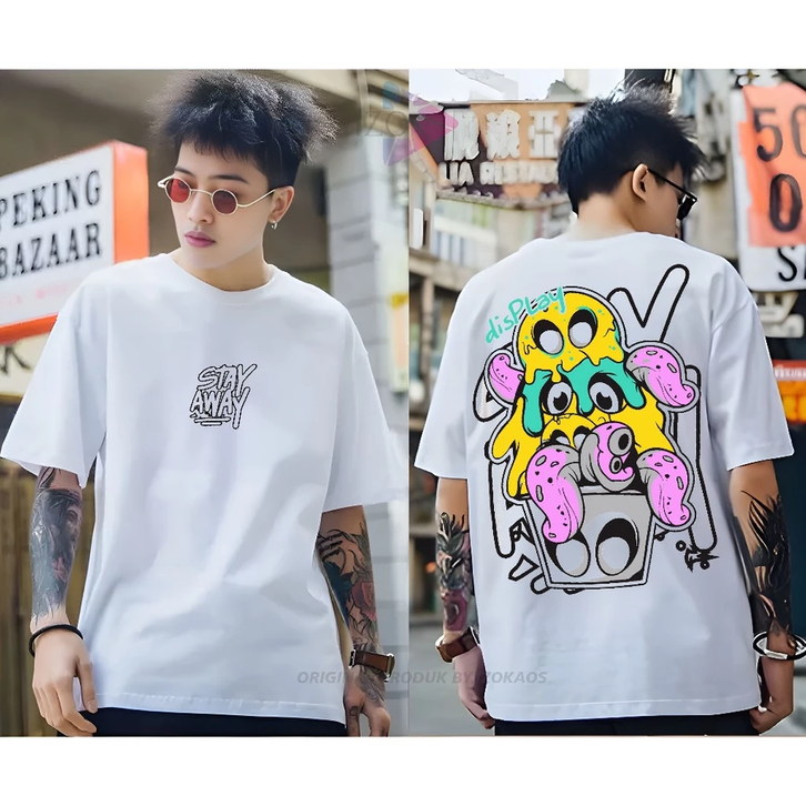 Baju Kaos Tshirt Distro Graffity Tuslisan Simpel Eatme Pakaian Pria Wanita Keren Lengan Pendek Warna Putih Terbaru Motif