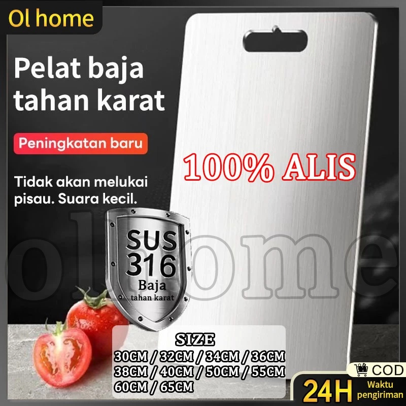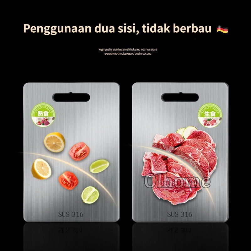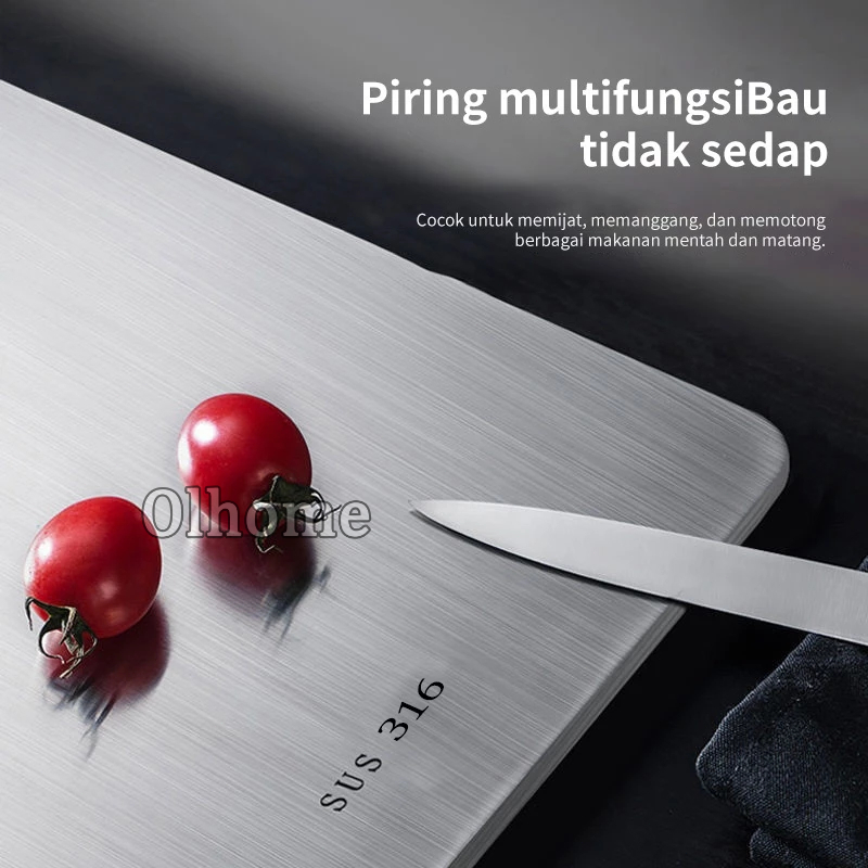 Olhome Talenan Stainless 316 Dua Sisi Talenan Multifungsi Food Grade Anti Bakteri dan Jamur Talenan