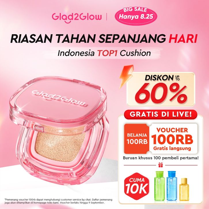 Glad2Glow Perfect Cover Cushion Foundation Waterproof Make Up Setting Concealer BB Cream Tahan Lama Hingga 12 Jam Hasil