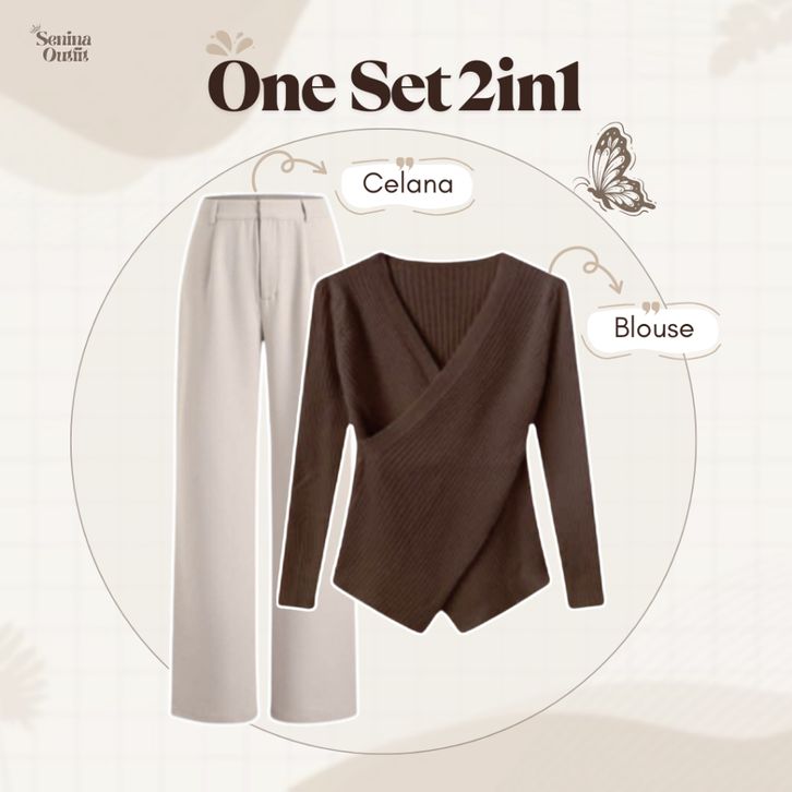 One Set Setelan Wanita Kekinian Atasan Rajut - Celana - Jilbab OOTD Outfit Cewek - SO69