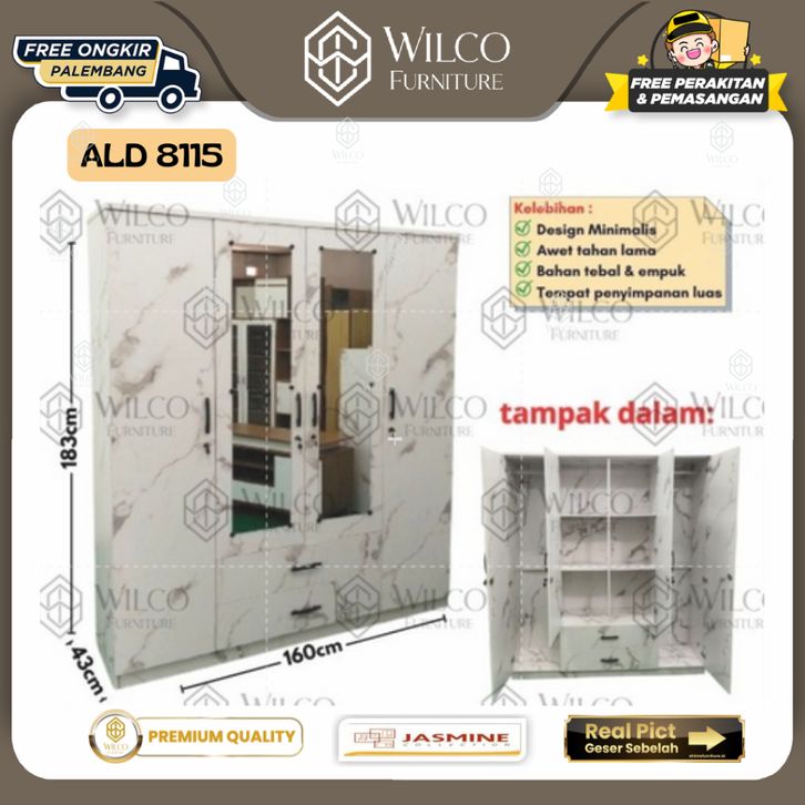 PROMO Lemari Pakaian Baju Jasmine 4 Pintu ALD 8115 L MARBLE Jasmine Palembang - Lemari 2 Pintu ORIGINAL