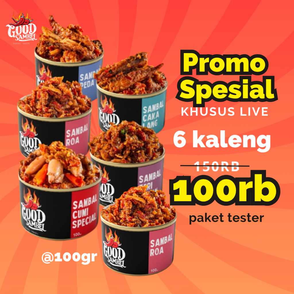 Promo Sambal Khusus Live Beli 6 Paket Tester 100 gr Lebih Hemat