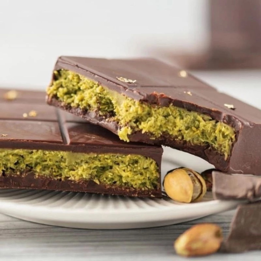 Coklat Dubai Kunafe Original "PISTACHIO KUNAFE" Chocolate Viral Lembut Meleleh Dimulut, Berat ±270 gr, Ukuran 16x8 cm ,F