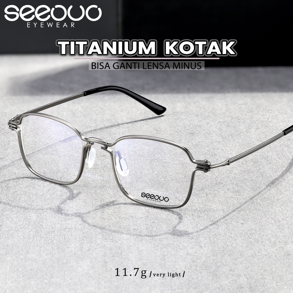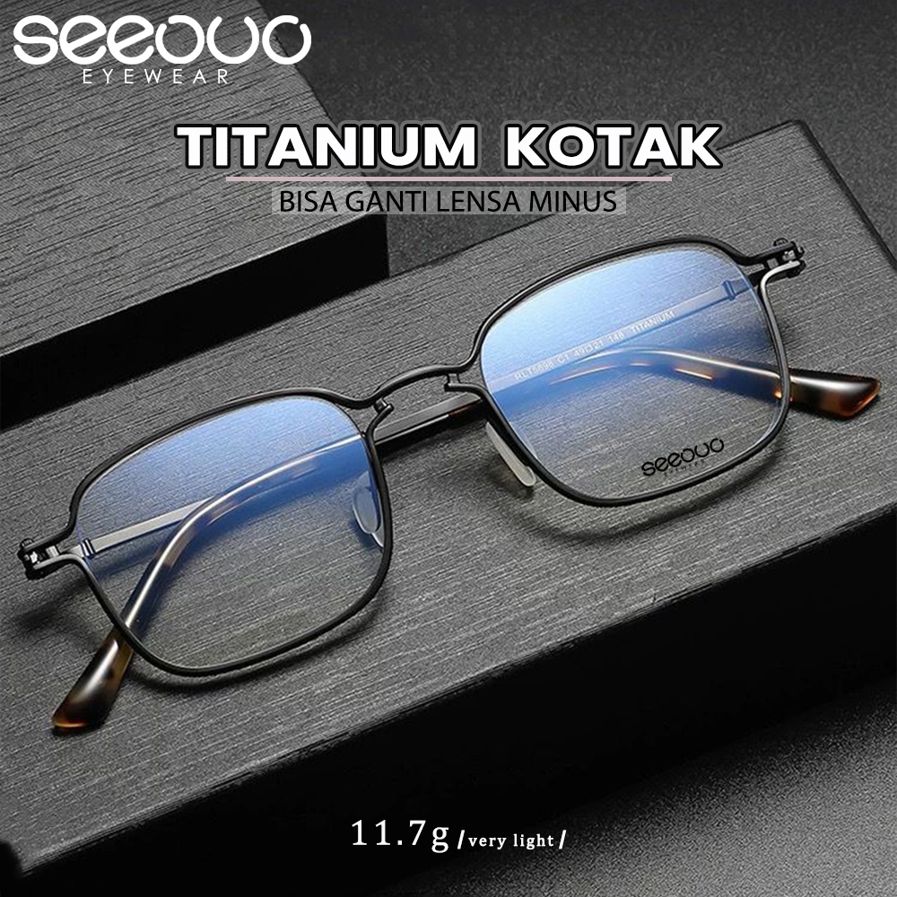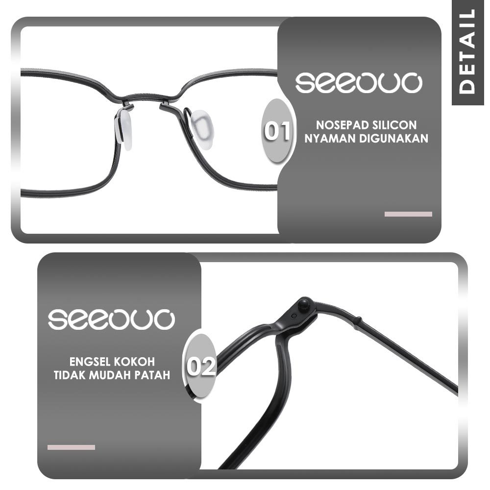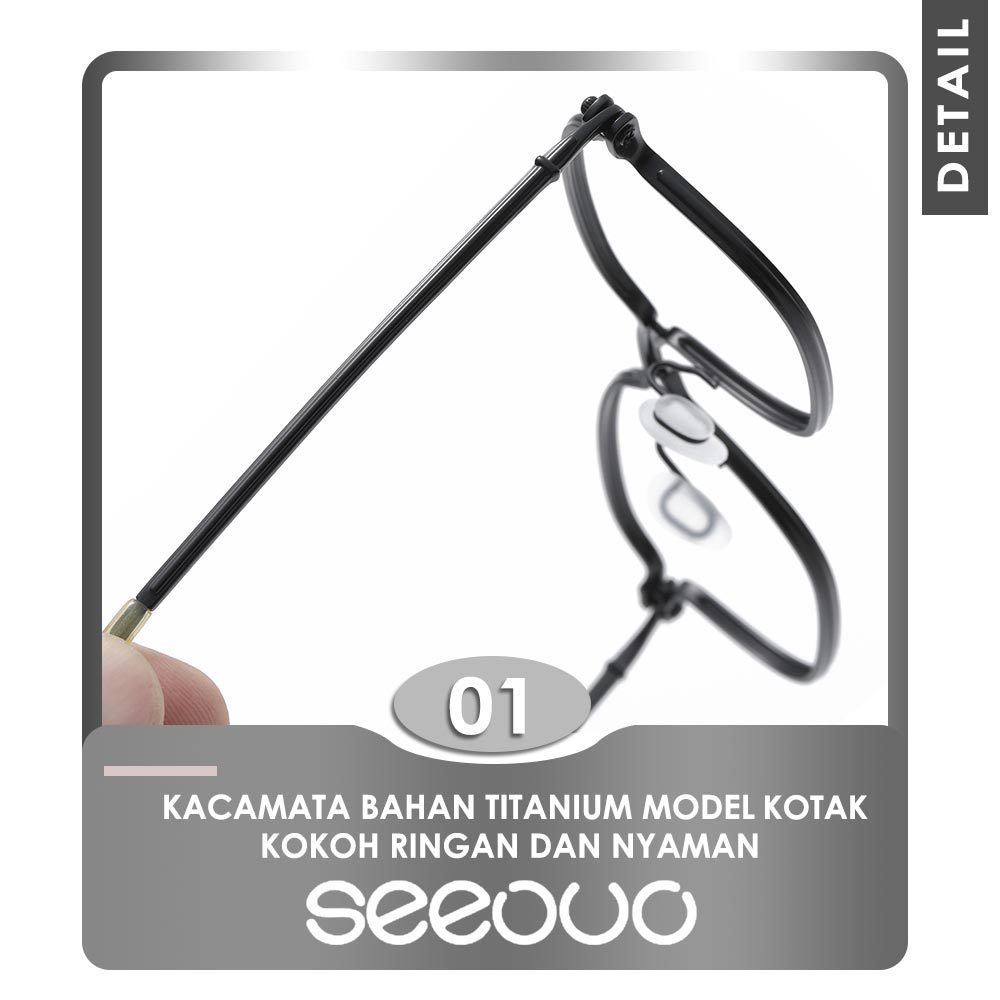 Seeouo Kacamata Plano Lens Bisa Minus Antiradiasi Blueray Photocromic Model Kotak Titanium High Quality Fashion Unisex 5