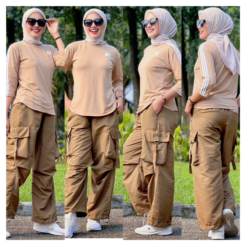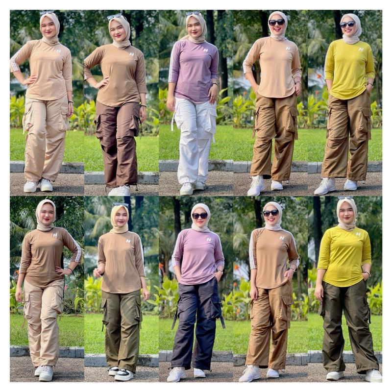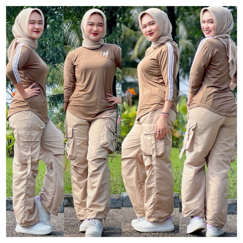 Mix Match Atasan N Petir Warna Nude dan Harajuku Bahan Parasut dan Atasan Spandek Polyster Stelan Olahraga Zumba Aerobik