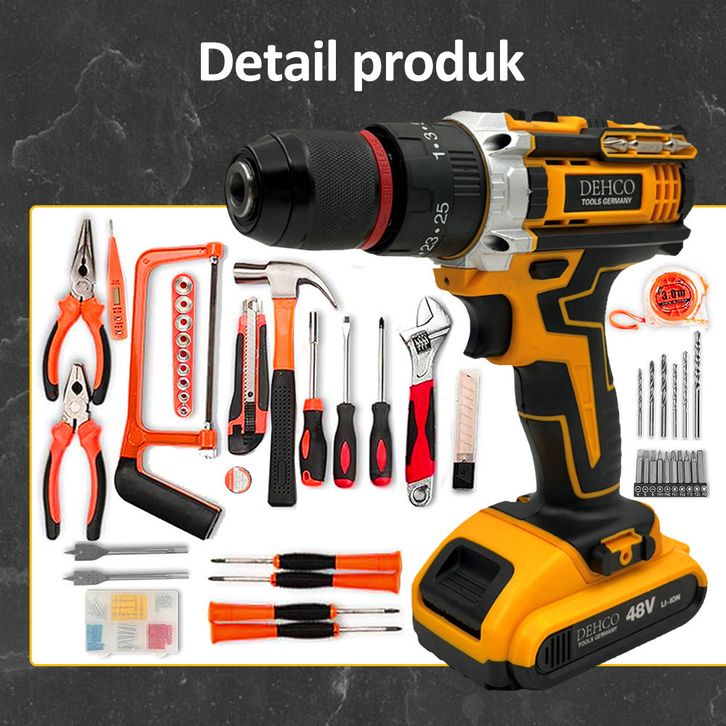 Bonkyo Mesin Bor Baterai Bor Impact Set Bor Listrik Kotak Peralatan Multifungsi Bor Beton DISKON
