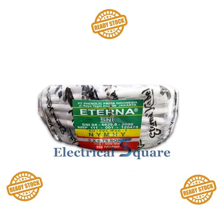 Eterna Kabel Listrik NYMHY 2x0.75MM 100M Serabut Tembaga Original SNI LMK 2 x 0.75 0,75 MM 100 M DISKON