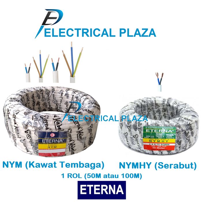 Eterna Kabel Listrik NYM Kawat Tembaga 2x1.5 2x2.5 3x1.5 3x2.5 MM atau NYMHY Serabut 2x0.75 MM 1 Rol 50M atau 100M 50 1
