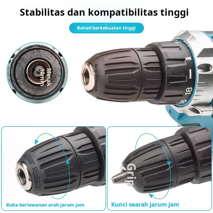 MAKITA Mesin Bor Listrik 36V bor brushless bor impact Mesin Bor Baterai Tangan 2 Baterai Cordless bolak balik Dapat Dig