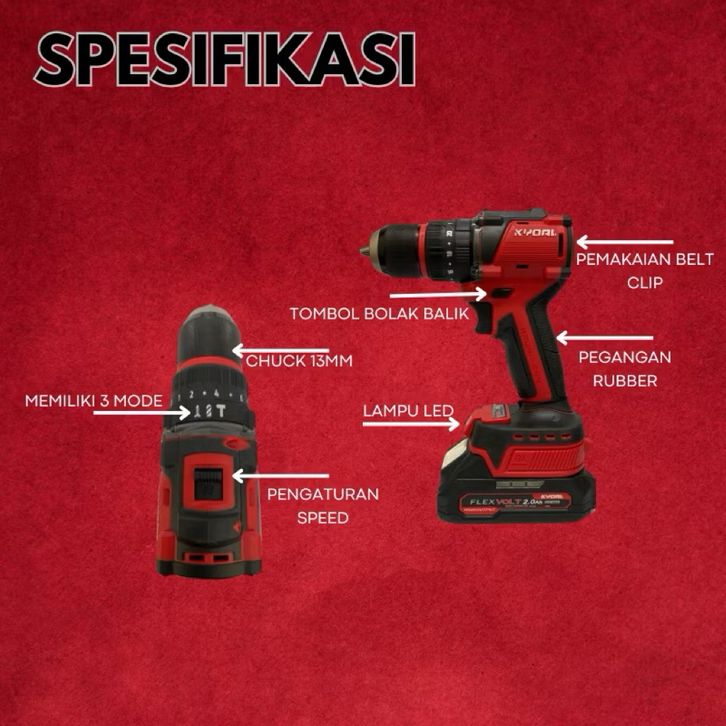 MESIN BOR BATERAI 13MM KYOAL CORDLESS DRILL IMPACT BOR PORTABLE BATERAI BRUSHLESS 13 MM MESIN BOR BETON BESI KAYU DISKO