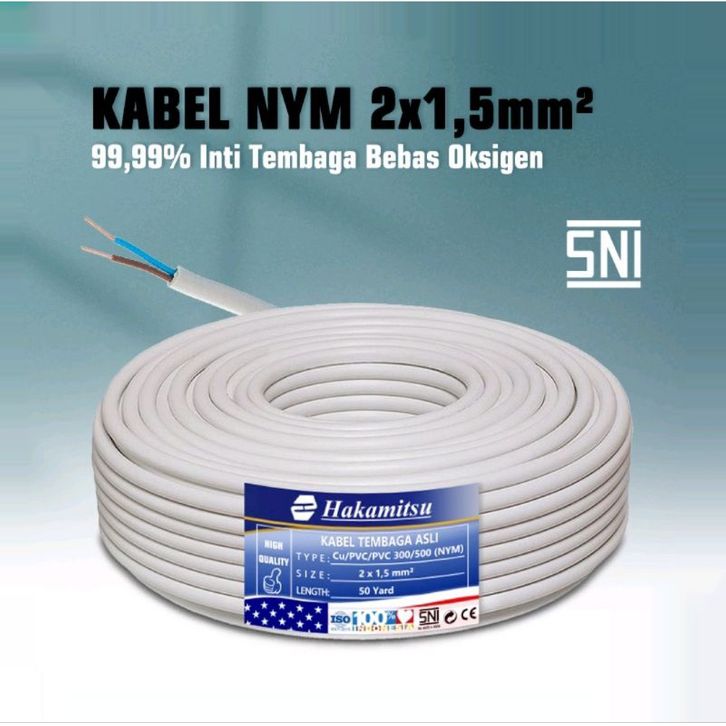 Kabel NYM 21.5MM 50Yard Full / Kabel Listrik Tembaga Murni PVC SNI / Merk Hakamitsu PROMO