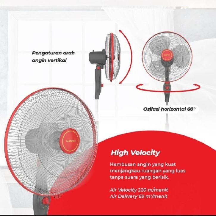 MASPION EX-1611 SX 100 ORI Stand Fan Kipas Angin Berdiri Kaki Silang 16" 50W DISKON