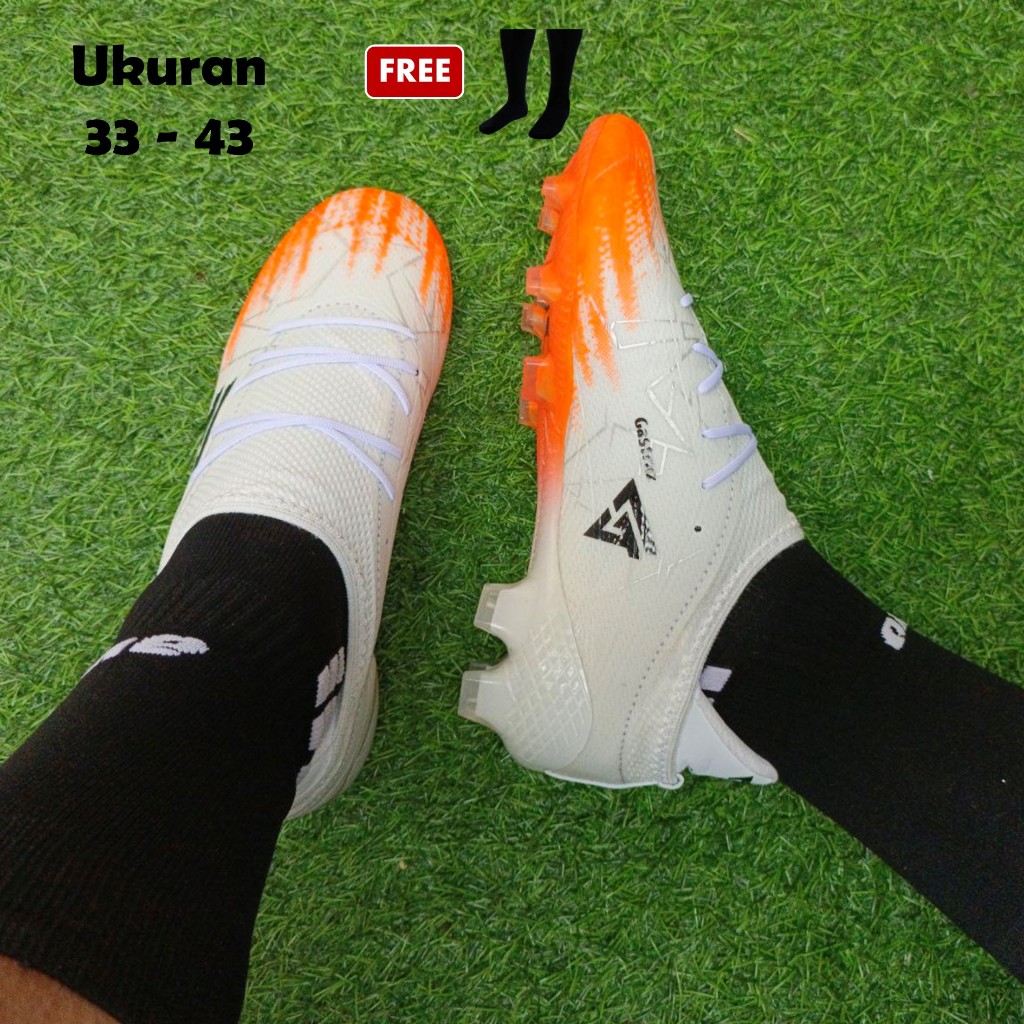 Sepatu Bola Dewasa Anak Gastruz Venture Putih Orange Terbaru Gratis Kaos Kaki