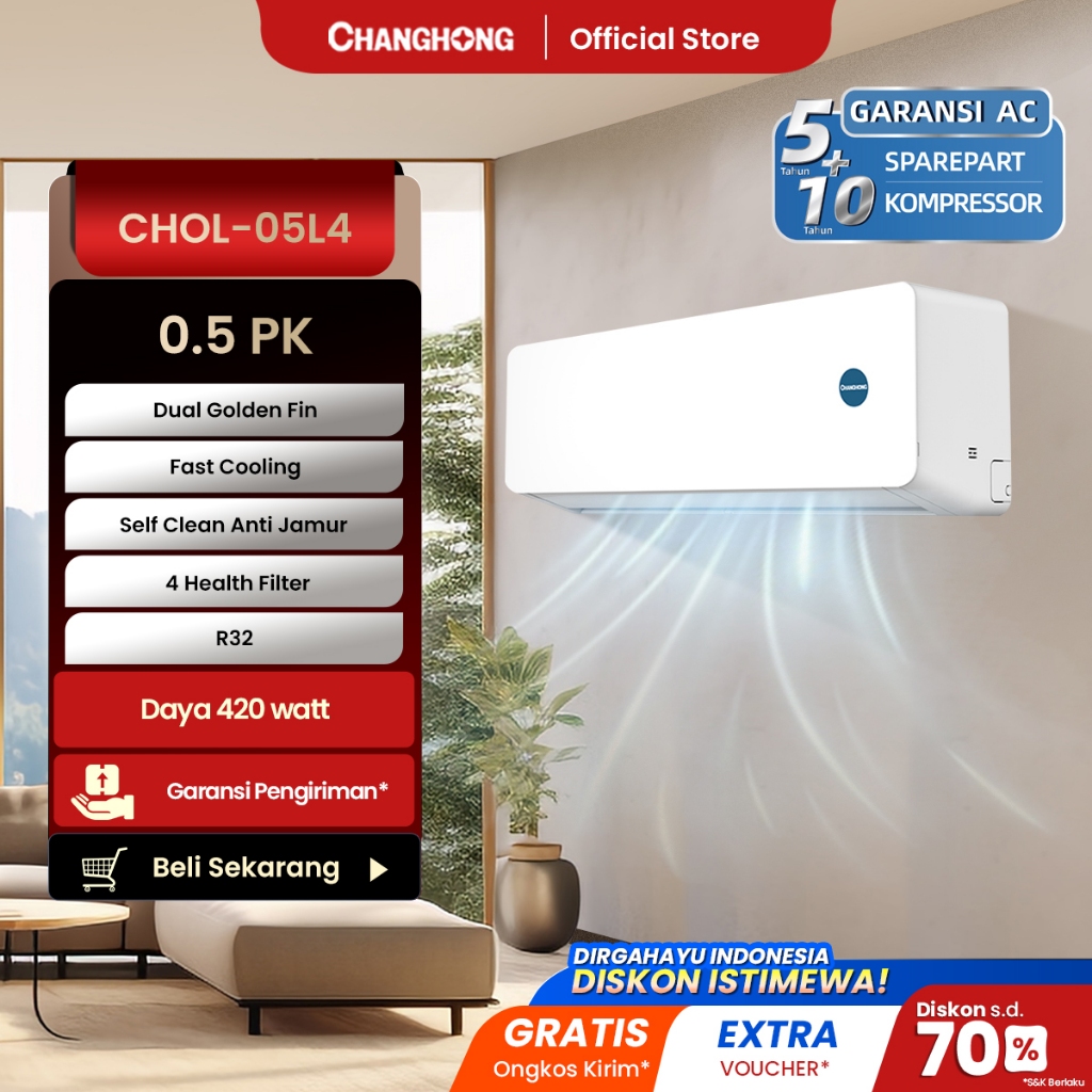 AC 1/2 PK Changhong Standard Chol-05L4 [Indoor + Outdoor Unit Only] [Fast Cooling] [Sleep Mode] [Eco Mode]]