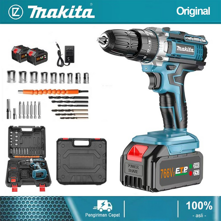 Bor Listrik Makita 1 Set Lengkap Original 766v Tanpa Kabel Dinding Kotak Alat Baterai Multifungsi Mesin Impact Ori