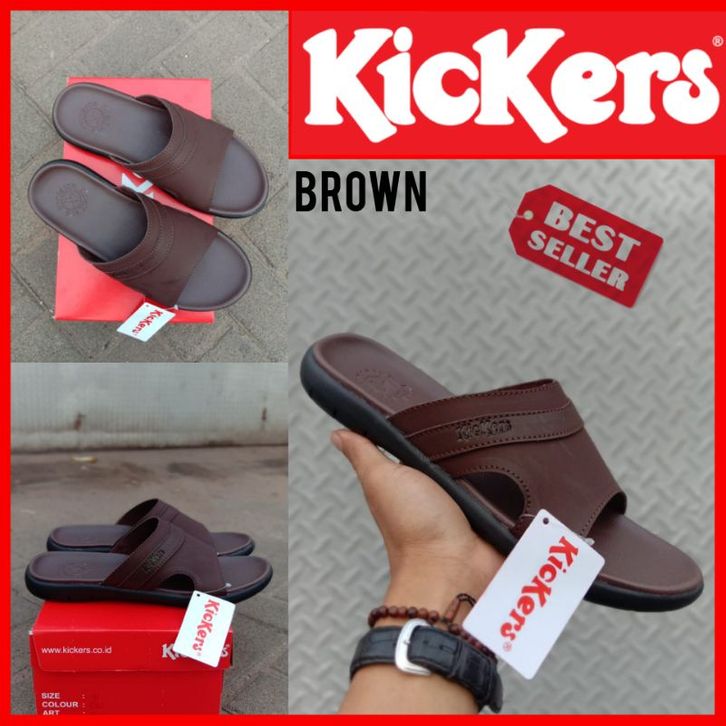 SANDAL SELOP PRIA KICKERS KULIT / SENDAL SLIDE COWOK PROMO / SANDAL LEBARAN DISTRO FORMAL DAN KASUAL