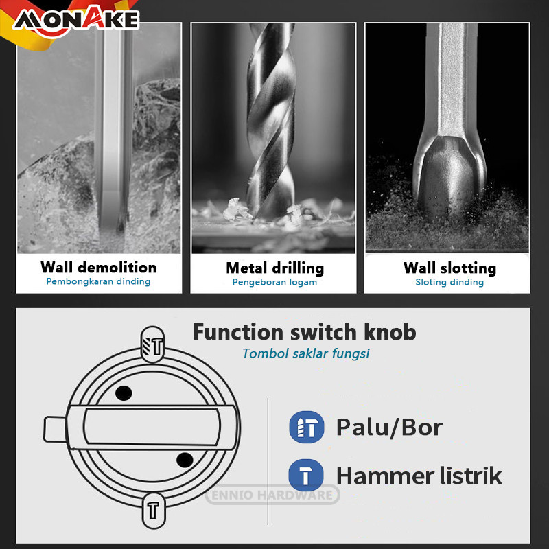 MONAKE JERMAN Mesin Bor Bobok 26mm Rotary Hammer Drill Impact Beton Tembok Listrik Bobok MK-26D