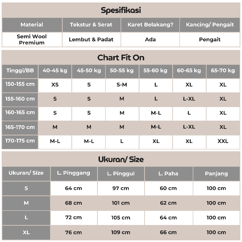 Oro pants celana kulot highwaist cewek warna abu abu coklat hitam beige panjang 100cm