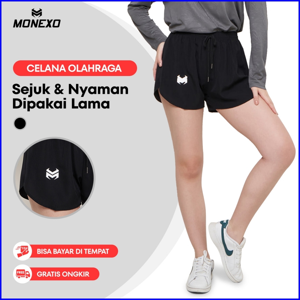 Monexo - Celana Pendek Olahraga Wanita Polos Premium Big Size Parasut Despo Lari Jogging Marathon Boxing Shortpants Cpw0