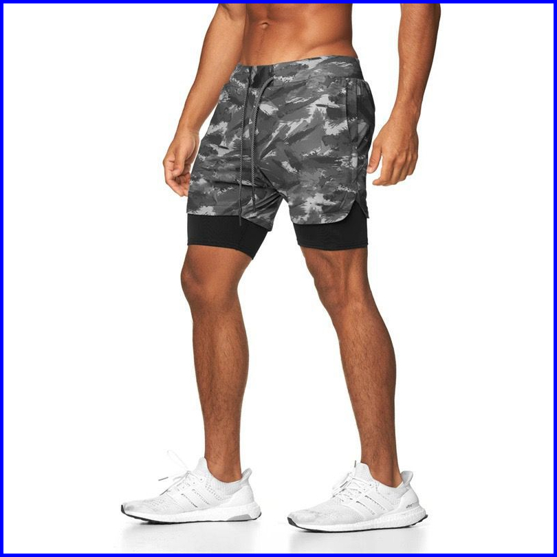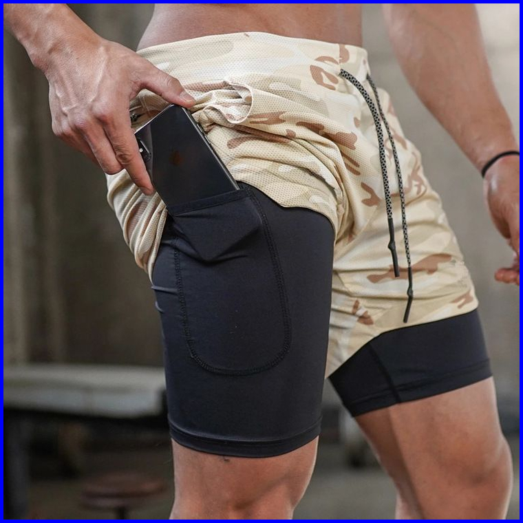 Monexo - Celana Pendek Sport Kompresi Pria Celana Pendek 2in1 Olahraga Gym Boxing Bersepeda Jogging