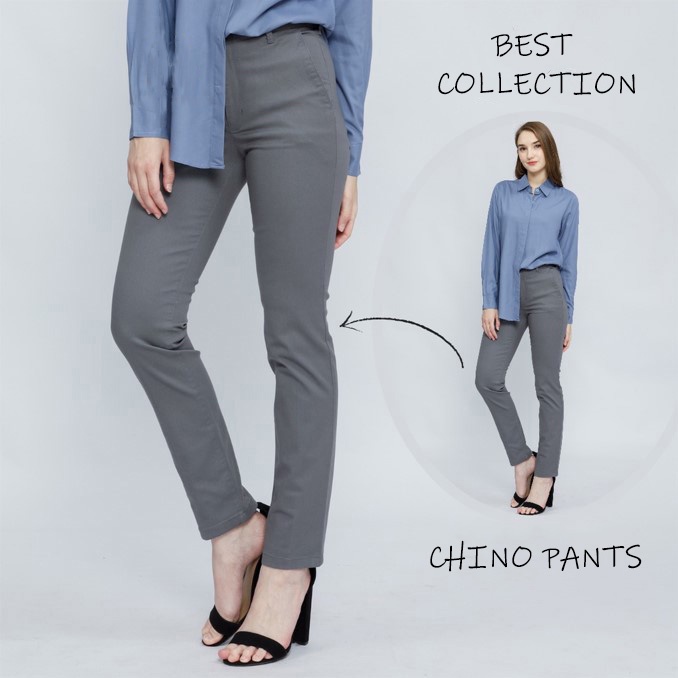 CELANA CHINO WANITA / CELANA KERJA HARIAN WANITA PANJANG BAHAN KATUN TWILL STRETCH